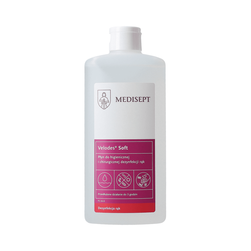 Zastosowanie: Velodes® Soft to gotowy do użycia alkoholowy preparat, przeznaczony do higienicznej i chirurgicznej dezynfekcji rąk. Posiada potwierdzone badaniami spektrum bakteriobójcze, bójcze wobec prątków gruźlicy, drożdżakobójcze i ograniczone wirusobójcze. Posiada przedłużone działanie bakteriobójcze. Działa szybko i skutecznie wobec wirusów otoczkowych i nieotoczkowych takich jak m.in. HIV, HBV, HCV, Rota wirus. Przebadany dermatologicznie.